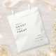 Introducing our White Modern Bold Wedding Love Is Sweet Favour Bag design, a true representation of modern minimalism and elegance. With its unique blend of creative and chic design elements, this design is perfect for those seeking a polished and bold aesthetic on their special day. Our chic off-set typography adds a touch of timeless sophistication to your wedding, whether you are planning your big day for spring, summer, fall, or winter, the versatility of this design ensures easy personalisation for any season. Classic black and white offer a clean and bright neutral backdrop that ensures that your wedding aesthetic will be effortlessly on point. As with all of our designs, if you have any questions or special requests, please just ask.