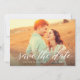 Announce your wedding in style with these chic save the date announcement cards that feature your engagement photo with a modern calligraphy script overlay design. This two-sided card includes wording on the front and back that can be personalised with all of the important details, including a wedding website. Note, the dark photo gradient filter on front is there for contrast with the text but it can be removed. The back of the card includes antique gold coloured text with a neutral beige border colour. This beige background colour can be modified.