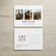Announce your special day with this modern minimalist save the date design featuring an elegant photo collage layout. Showcasing personal couple engagement photos in a three photo wedding collage framed in white, this stylish wedding announcement card blends a rustic botanical wedding theme with botanical accent save the date details. The clean soft script typography complements the minimalist neutral colour palette, and the easy to mail postcard style makes this a perfect choice for couples seeking a simple, elegant, and personal invitation.