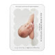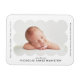 Modern birth announcement magnet featuring your baby's photo nestled inside of a white scalloped frame. Personalise the white birth announcement magnet by adding your baby's name and additional information in black lettering.