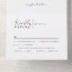 Introducing our White Modern Script Wedding All in One Invitation design, where modern minimalism meets the artistry of calligraphy. This curated aesthetic brings an air of sophistication to your special day- with a twist of boho, casual charm. The combination of simple typography with a stylish script font adds a unique personality to your wedding. This classic design offers a timeless, polished look that's perfect for spring, summer, fall, or winter weddings. A simple understated palette of black and white creates the perfect neutral backdrop for your celebration. Make your wedding truly elegant with our lovely Modern Script collection. As with all of our designs, if you have any questions or special requests, please just ask.