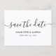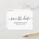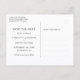 Elegant white wedding save the date postcard with a modern script font. Matching items available.