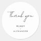 Introducing our White Modern Script Wedding Thank You Classic Round Sticker design, where modern minimalism meets the artistry of calligraphy. This curated aesthetic brings an air of sophistication to your special day- with a twist of boho, casual charm. The combination of simple typography with a stylish script font adds a unique personality to your wedding. This classic design offers a timeless, polished look that's perfect for spring, summer, fall, or winter weddings. A simple understated palette of black and white creates the perfect neutral backdrop for your celebration. Make your wedding truly elegant with our lovely Modern Script collection. As with all of our designs, if you have any questions or special requests, please just ask.