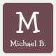 White Monogram and Name on Dusty Burgundy Square Sticker