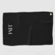 Golf towel with white three initial monogram or name on a black background. Personalise with your three initial monogram or name using the easy template. Font colour, font style, and font size are customisable.