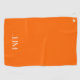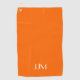 Golf towel with white three initial monogram or name on an orange background. Personalise with your three initial monogram or name using the easy template. Font colour, font style, and font size are customisable.