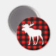 White Moose & Rustic Black Red Buffalo Check Plaid Magnet
