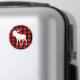 Rustic fridge magnet with a white moose silhouette over a black and red buffalo check plaid pattern.
