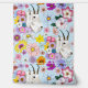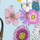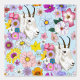 A side portrait profile of a white mountain goat. Wild flowers are all around the mountain goat all drawn in a tattoo style in a backdrop of blue