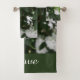 Pretty bathroom towel set with close-up of white mountain laurel flowers with big green leaves and the gentle sunlight on the flowers. The larger bath towel has a green border on top and bottom with the word Love written in white text. The mountain laurel is considered one of the most beautiful native American shrubs with its star shaped cluster flowers with bits of pink and red. This fragrant flower is the state flower for Pennsylvania and Connecticut. Hang on a bathroom towel rod for display by arranging the large bath towel, hand towel layered in the middle, with the washcloth top. Unlike the item preview window, you may need to fold back the left and right sides of the bath towel, and hand towel for a more lovely layered decorative fit on the rod with the washcloth resting on top fully laid flat. Nice three piece set for everyday use too. Lovely for anyone who loves nature. Original Photography by TamiraZDesigns. Visit my store for more unique items at: www.zazzle.com/tamirazdesigns