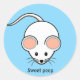 White mouse cartoon on light blue classic round sticker