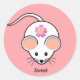 White mouse cartoon with flower on coral pink classic round sticker