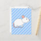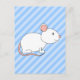 A cute little white mouse on a light blue striped background. A nice pet cartoon picture.