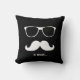 Trendy moustache and sunglasses in disguise graphic art with a white moustache and hipster retro sunglasses on a black background colour with a mod black and white stripes pattern on the back. Fun decorative throw pillow perfect for any room as an home decor accent pillow. Whether you are looking for a bold art accent piece to finish your home decor look or just want to give a gag gift to your friends, this incognito moustache humour pillow will be perfect. MovieFun©