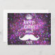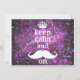 Cute girly white moustache keep calm and colourful purple and pink sparkle a glamour style design pattern background. The perfect gift for her birthday or any occasion