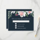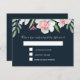 This floral watercolor style RSVP is printed with a border of white and pink narcissus and foliage on a dark navy background. Menu entree selection options on the reverse side. Text is in white. All pre-formatted and ready for you to edit with your own details. See the matching invitation and more pieces and other colour options in this collection at MonogramsandMonikers on Zazzle.