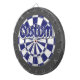 Personalise with your custom text! White, Navy Blue, And Charcoal Grey Coloured Dartboard Including 6 Brass Darts