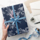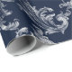 White Navy Blue Brocade Christmas Wrapping Paper