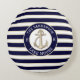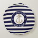 White Navy Blue Stripe Boat Name Anchor Welcome Round Cushion