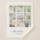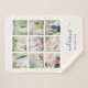 White Blanket with 9 square photos arranged in a grid layout. You can also add your family name in a stylish calligraphy font and the year established. Perfect for wedding gifts, family keepsakes, etc.