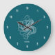 White octopus on custom turquoise background monog large clock
