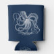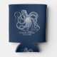 White octopus with a custom navy blue text can cooler