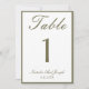Classy and elegant old money white and olive green wedding table numbers. As you see it features a white old money background with olive green script that match the whole suite.