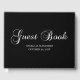 Minimalistic solid black colour background a decorative white contemporary calligraphy script that says "Guest Book".