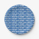 Merry Christmas typography paper plate white on blue pattern. Customise the background colour among other options in an easy way.
