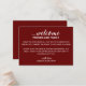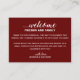 This charming white text on dark red welcome card, placed in your welcome bag or basket in their accommodation, is a nice way to thank your out of town guests for the travel they needed to do to get to your wedding.