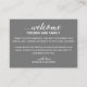 This charming white text on grey welcome card, placed in your welcome bag or basket in their accommodation, is a nice way to thank your out of town guests for the travel they needed to do to get to your wedding.