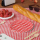 White on red medium size polka dots pattern, a simple but elegant design