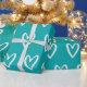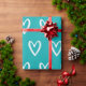 White on Sea Green Handdrawn Hearts Wrapping Paper
