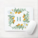 Tropical floral monogram mousepad. It features watercolor illustrations of white orchids, kumquats and greenery. Personalize by adding your own initial. This floral monogram mousepad is perfect as a personalized gift.