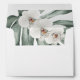 A lush tropical theme makes this envelope a beautiful choice for weddings or events with an island style or beach theme. The inside of the envelope has a watercolor floral motif with a Monstera with three elegant white orchids. The back flap of the envelope has an orchid branch placed above a text template for personalising with your name and return address. Other matching products are available with this modern tropical design motif.