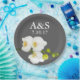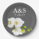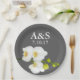 White Orchids Wedding Couple's Initials & Date Paper Plate