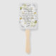 Hand-held wedding program on a stick with white orchids. Realistic orchid flowers cover the background over pale silver grey colour. On the front of the rectangular cards, “Welcome” text is at the top. Add the names of the couple in script along with the location, date and time of ceremony. The second sheet is for the back of the program with a paragraph template to hold the wedding party names, and all other info for the wedding and reception. It also has the same pretty orchids and buds image.