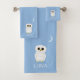 Elegant white owl and crescent moon on sky blue with editable text Bath Towel Set. Elegant modern towels. The image can be customised.
