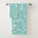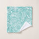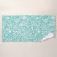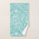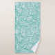 The white vintage floral paisley pattern over a turquoise-blue colour background.
