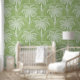 White Palm Trees on Soft Green Coastal Tropical Wallpaper