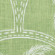 A symmetrical palm tree pattern featuring white etched-style palms set against a soft green background. The arch-like layout and subtle hand-drawn texture give the design a breezy, relaxed feel.