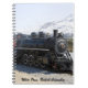 Notebook with an Old-fashioned train travelling through the White Pass to Skagway, British Columbia and a snow covered mountain in the background.