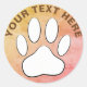 White Paw Print Aged Paper Custom Text Classic Round Sticker