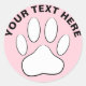 White Paw Print Custom Text Pastel Pink Classic Round Sticker