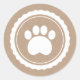 white paw print on brown paper classic round sticker