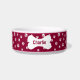 Pamper your dog with this cute white paw patterned pet bowl. Change the dark red text and background to your favourite colour, looks awesome with most colours except white. Use the provided template to personalise it with your pet's name in the white bone.