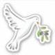 Sticker featuring a cartoon illustration of a white peace dove carrying an olive branch