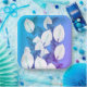 White Peace lily on light blue to purple background. Illustrated floral design.