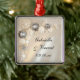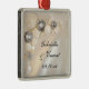 Commemorate your nuptials with the pretty White Pearl and Diamond Buttons Wedding Square Ornament. Personalise it with the names of the bride and groom and marriage ceremony date. This custom button wedding ornament features vintage looking pearl and diamond buttons with a white satin background.