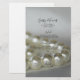 Customize the elegant White Pearls Wedding Menu with the details of the meal that you will serve at your bridal shower luncheon, post wedding brunch or marriage reception dinner by adding the salad or first course, entree or second course and dessert or third course. Personalize it with the names of the bride and groom, event venue and date. This classy custom wedding menu features a close up photograph of a white pearl necklace with a gray background.